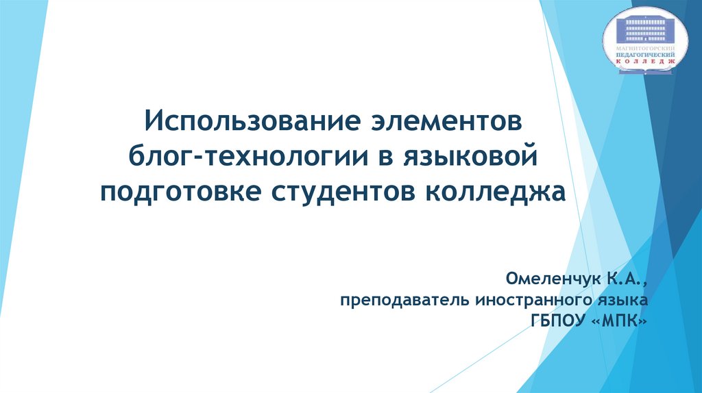 Использование элементов блог-технологии в языковой подготовке студентов колледжа