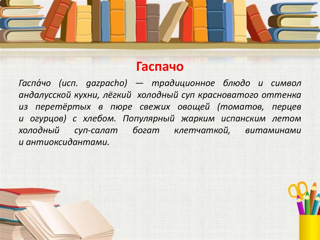 и огурцов) с хлебом. Популярный жарким испанским летом