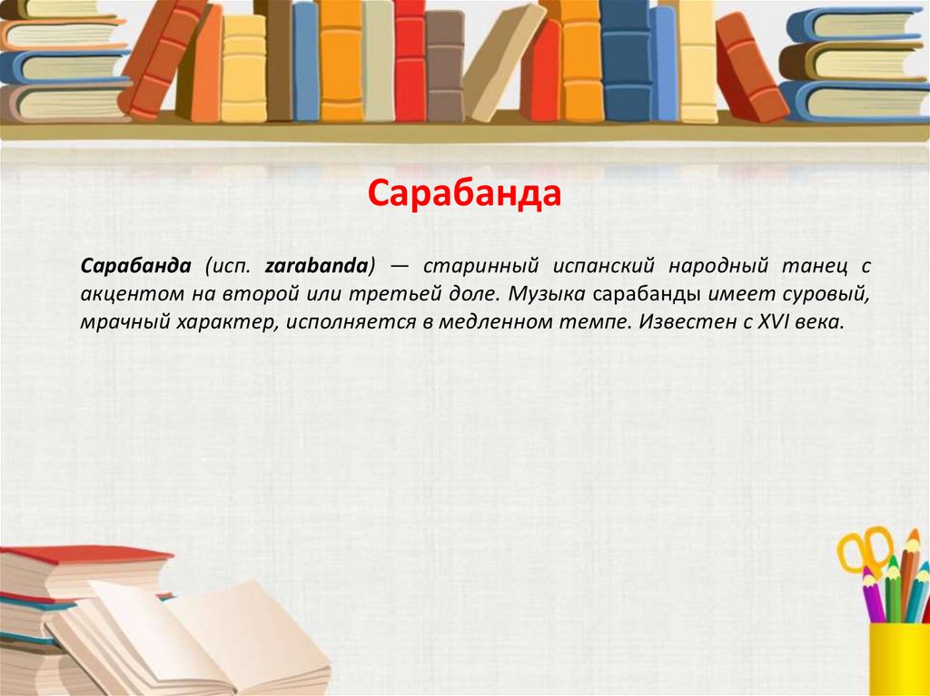 СарабандаСарабанда (исп. zarabanda) — старинный испанский народный танец с