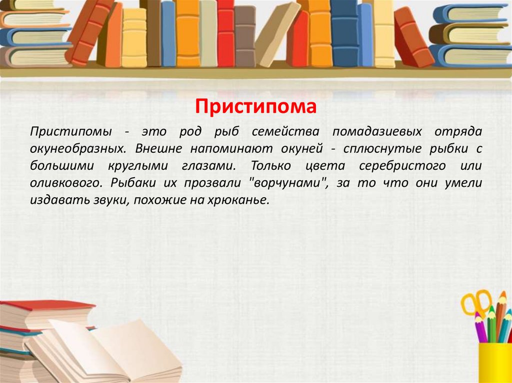 ПристипомаПристипомы - это род рыб семейства помадазиевых отряда