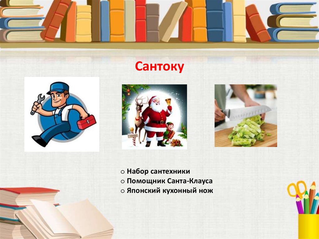 «Сантоку» буквально переводится как «три хороших вещи» или «три
