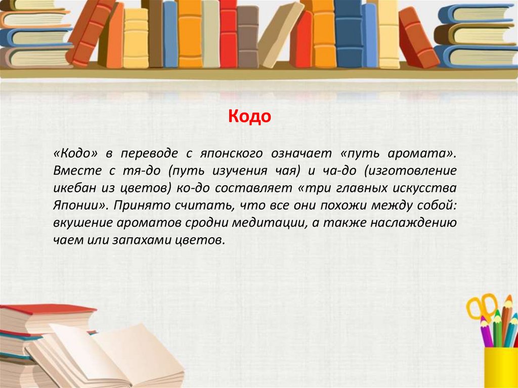 Кодо«Кодо» в переводе с японского означает «путь аромата».