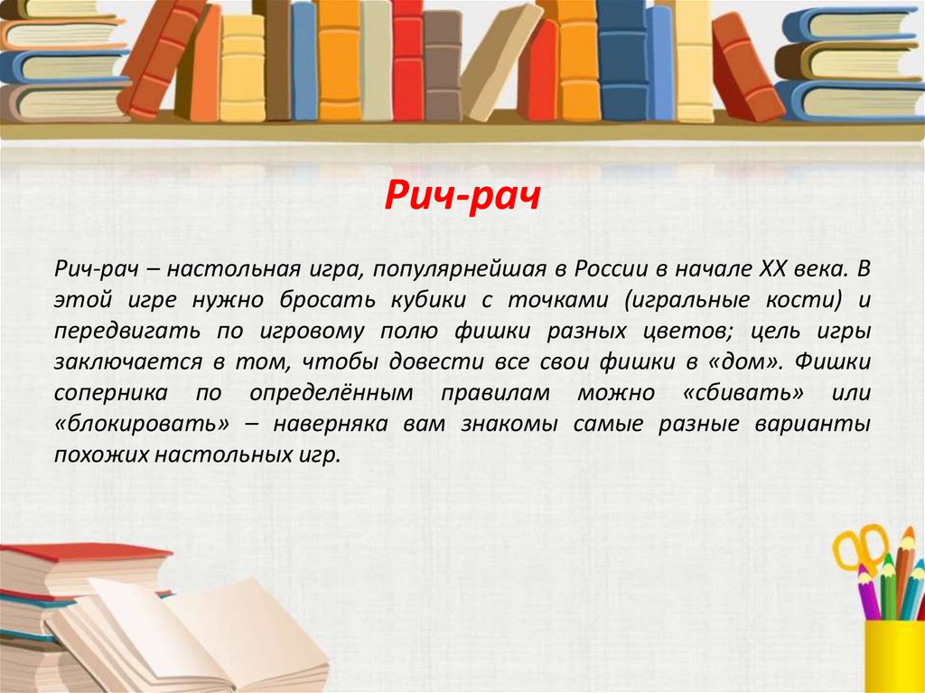 Рич-рачРич-рач – настольная игра, популярнейшая в России в начале XX века. В