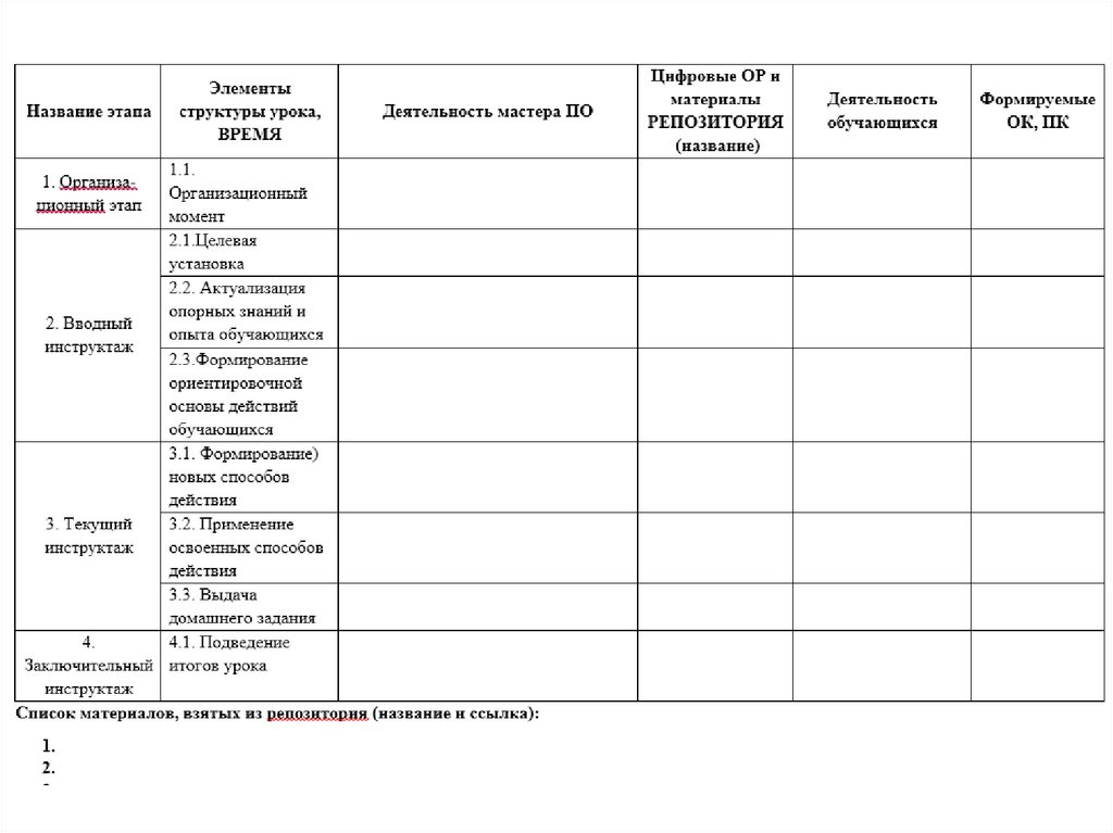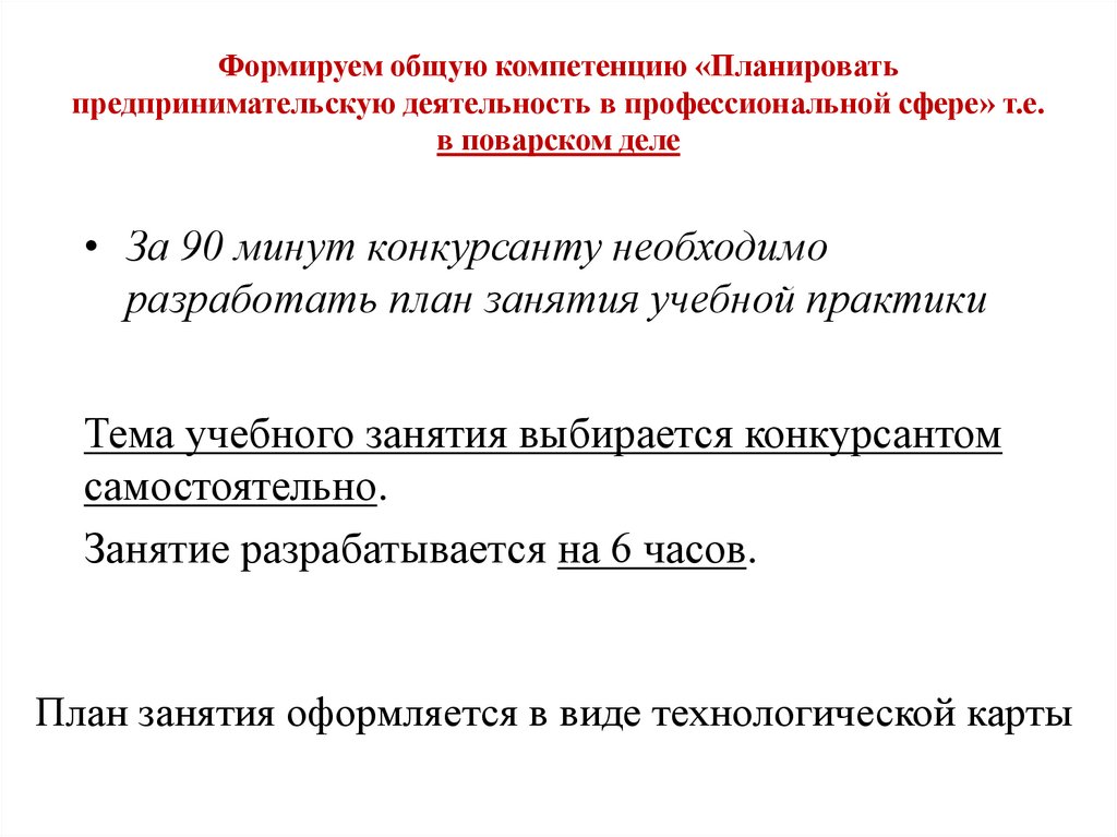 Методическая часть комплексного задания II уровня заключается в разработке плана занятия учебной практики