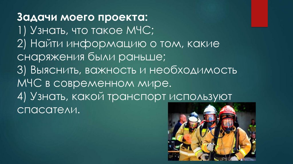 Задачи моего проекта:1) Узнать, что такое МЧС;