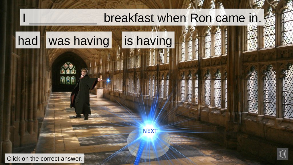 I __________ breakfast when Ron came in.had was having