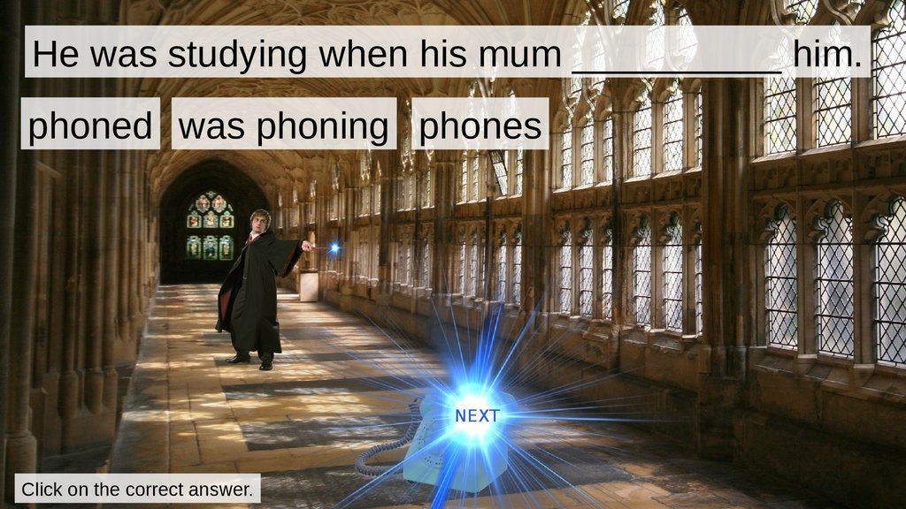 He was studying when his mum __________ him.phoned was phoning phones
