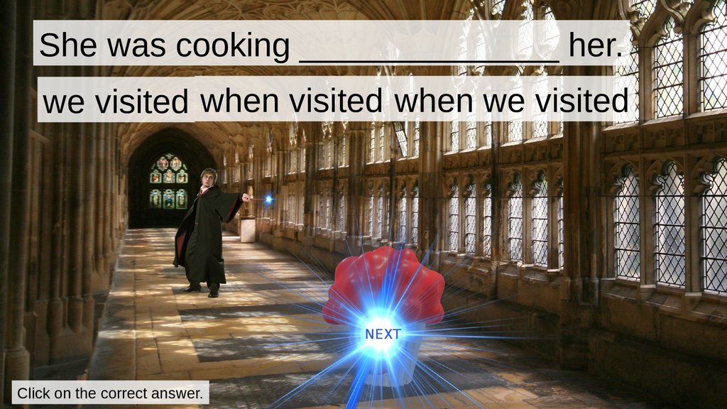 She was cooking ______________ her.we visited when visited when we visited