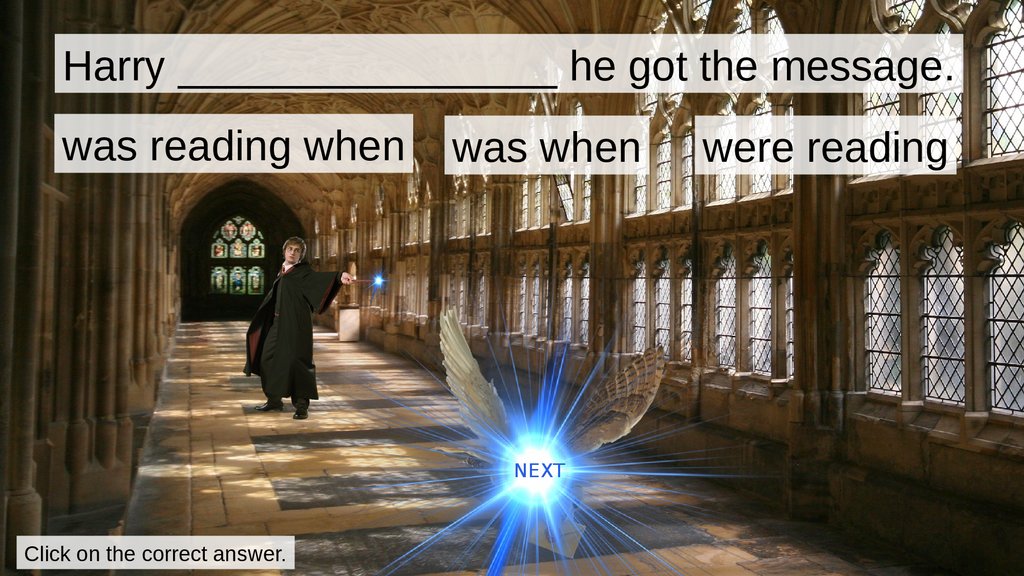 Harry ________________ he got the message.was reading when