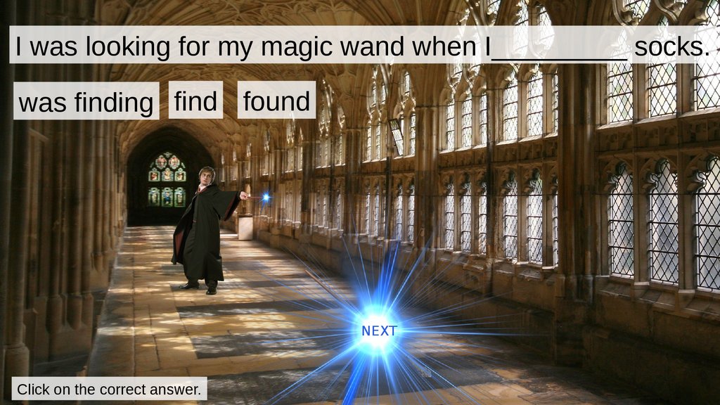 I was looking for my magic wand when I_________ socks.was finding find found