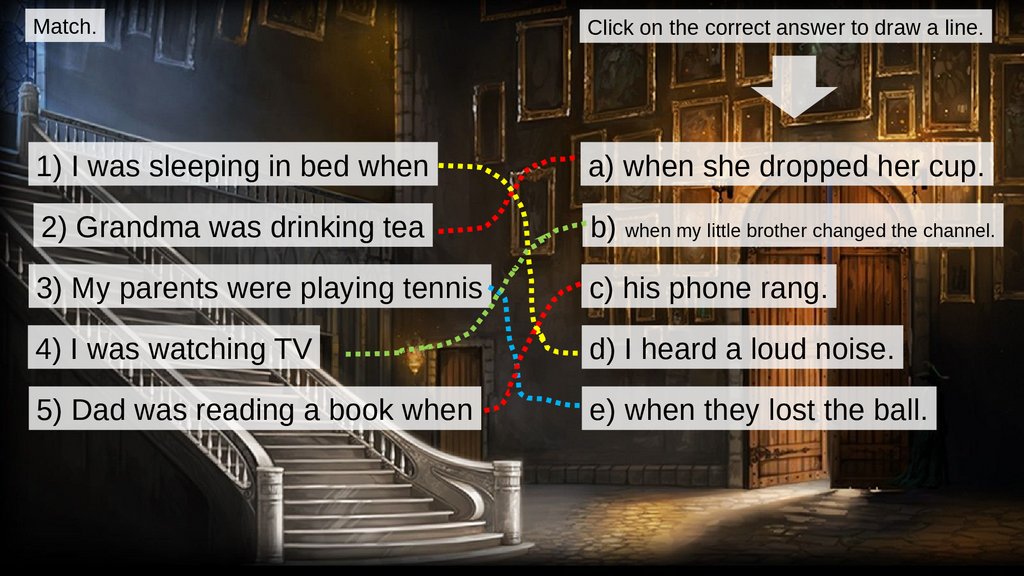 Match.Click on the correct answer to draw a line.