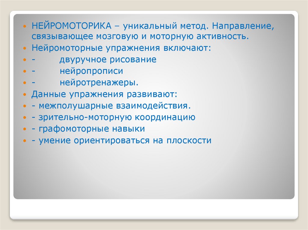 НЕЙРОМОТОРИКА – уникальный метод. Направление,связывающее мозговую и моторную активность.