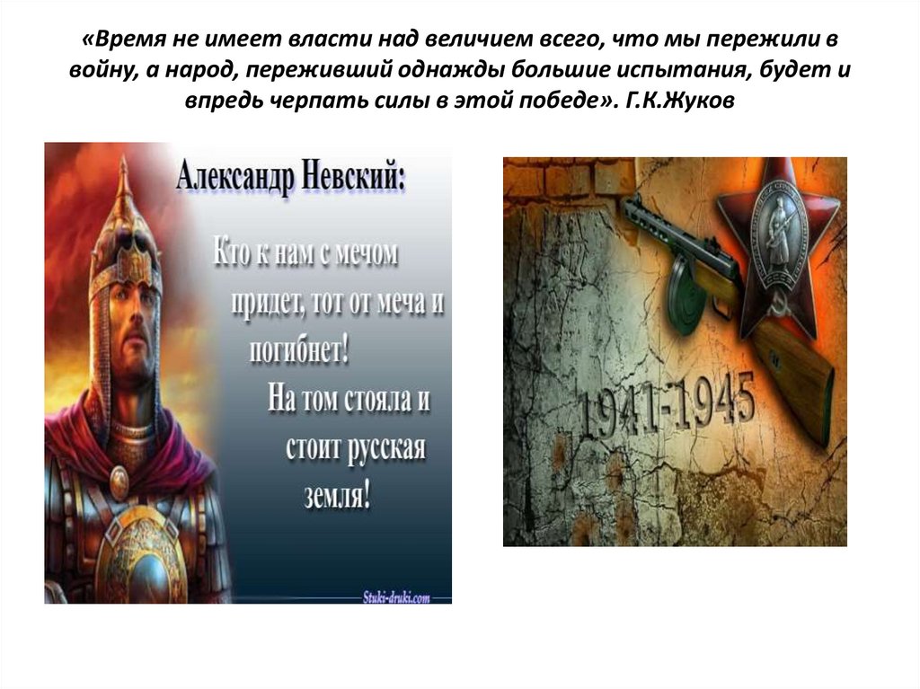 «Время не имеет власти над величием всего, что мы пережили ввойну, а народ, переживший однажды большие испытания, будет и