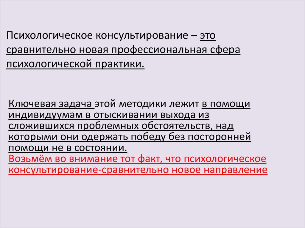 Психологическое консультирование – этосравнительно новая профессиональная сфера