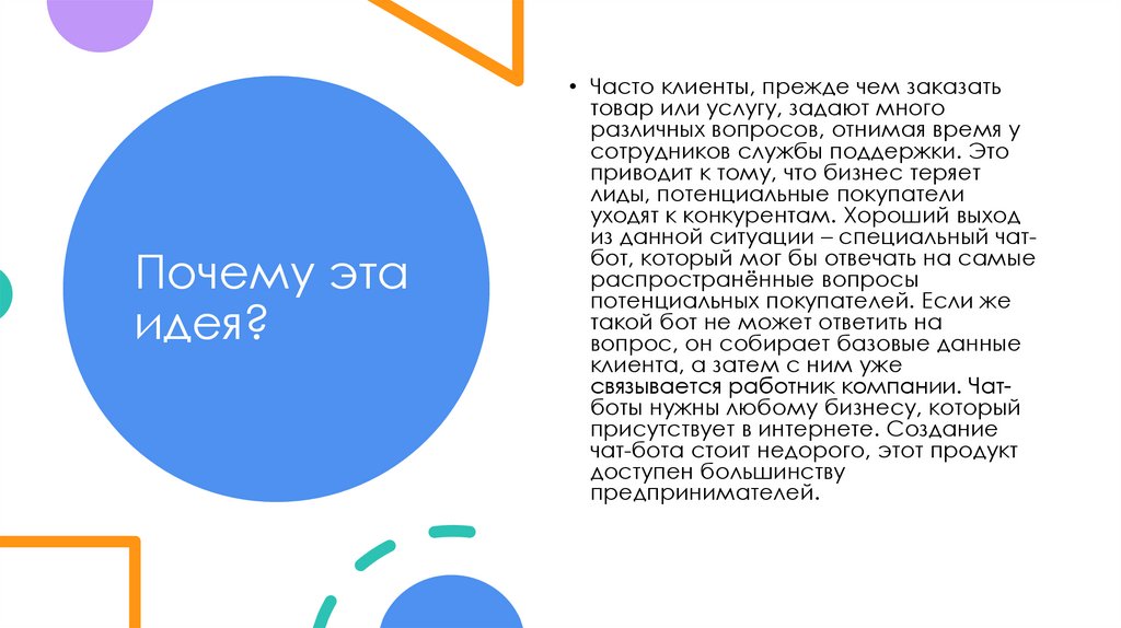 из данной ситуации – специальный чатбот, который мог бы отвечать на самые