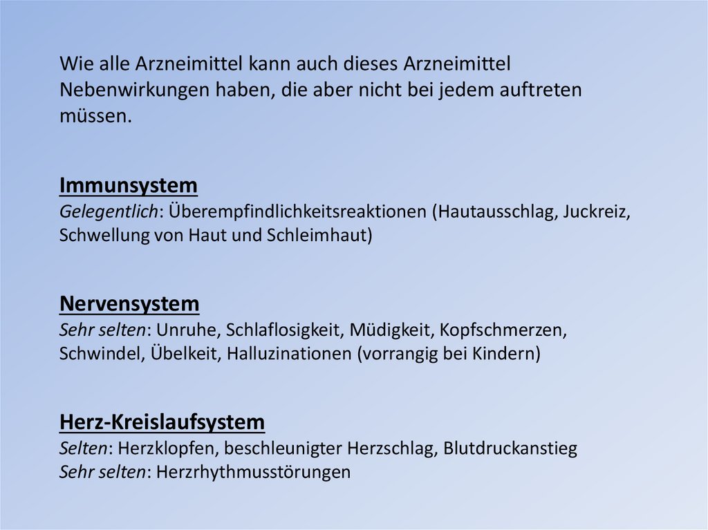 Wie alle Arzneimittel kann auch dieses ArzneimittelNebenwirkungen haben, die aber nicht bei jedem auftreten