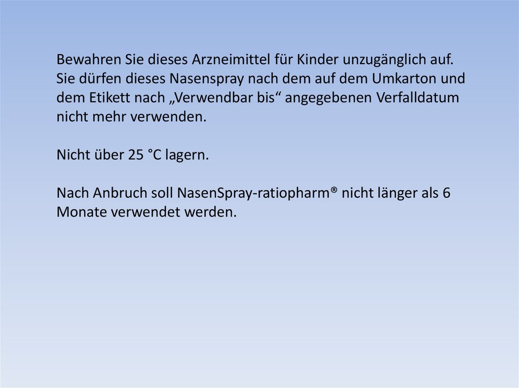Bewahren Sie dieses Arzneimittel für Kinder unzugänglich auf.Sie dürfen dieses Nasenspray nach dem auf dem Umkarton und