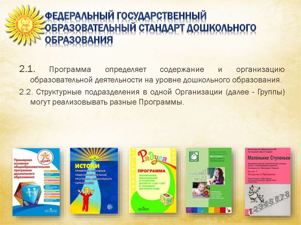 образовательных программ дошкольного образования, их