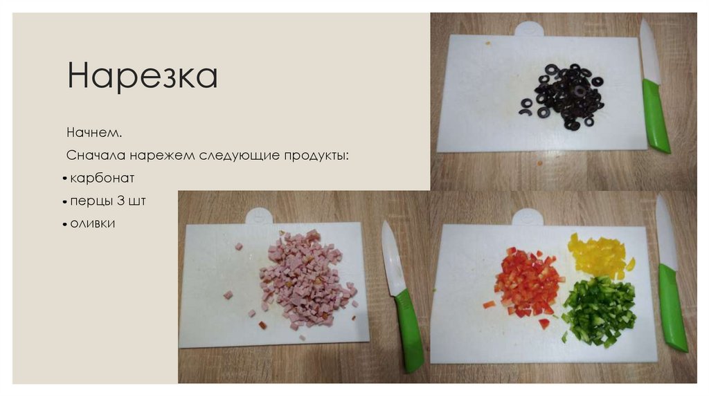 Сначала нарежем следующие продукты:
