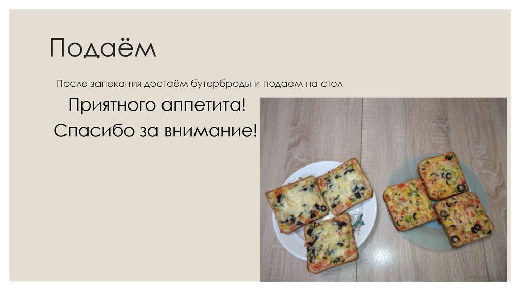 ПодаёмПосле запекания достаём бутерброды и подаем на стол