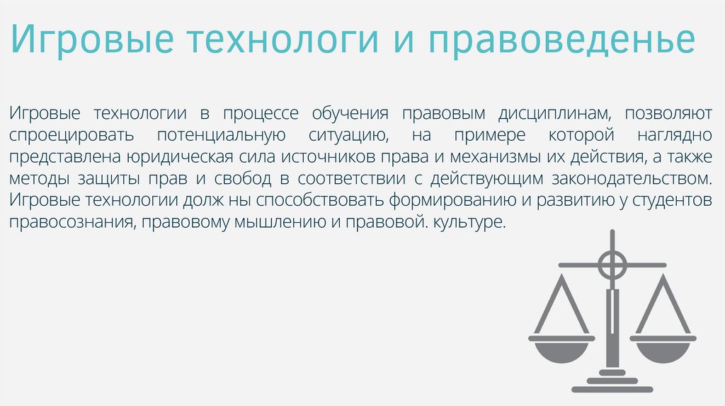 Игровые технологи и правоведеньеИгровые технологии в процессе обучения правовым дисциплинам, позволяют