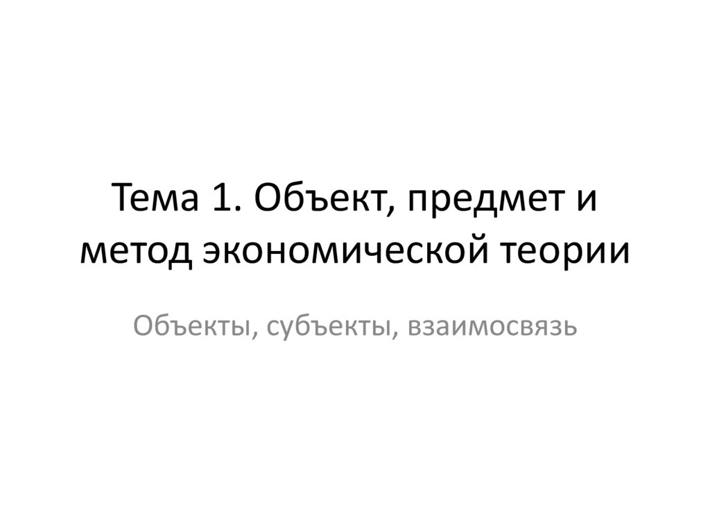Объект, предмет и метод экономической теории. Объекты, субъекты, взаимосвязь. Тема 1