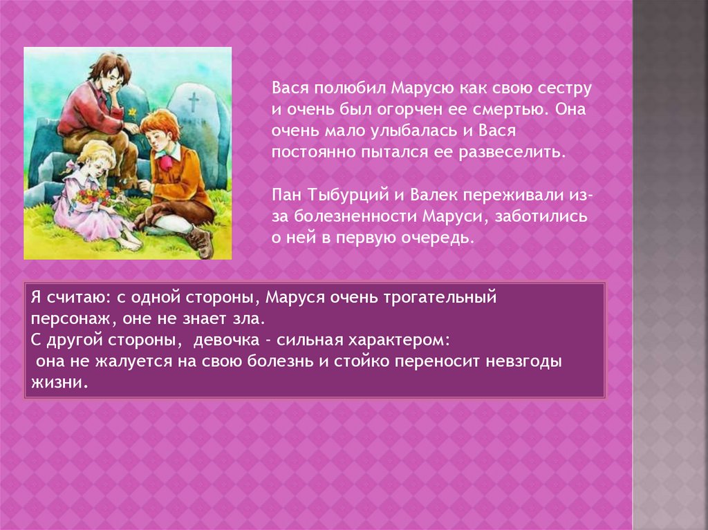Пан Тыбурций и Валек переживали изза болезненности Маруси, заботились