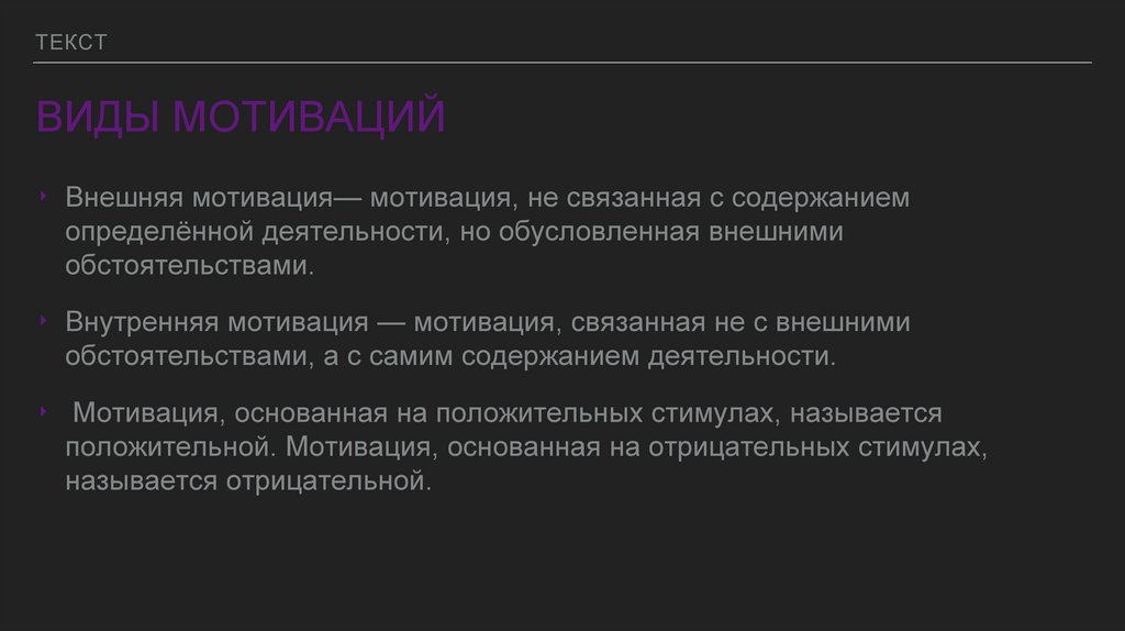 ‣ Внешняя мотивация— мотивация, не связанная с содержанием