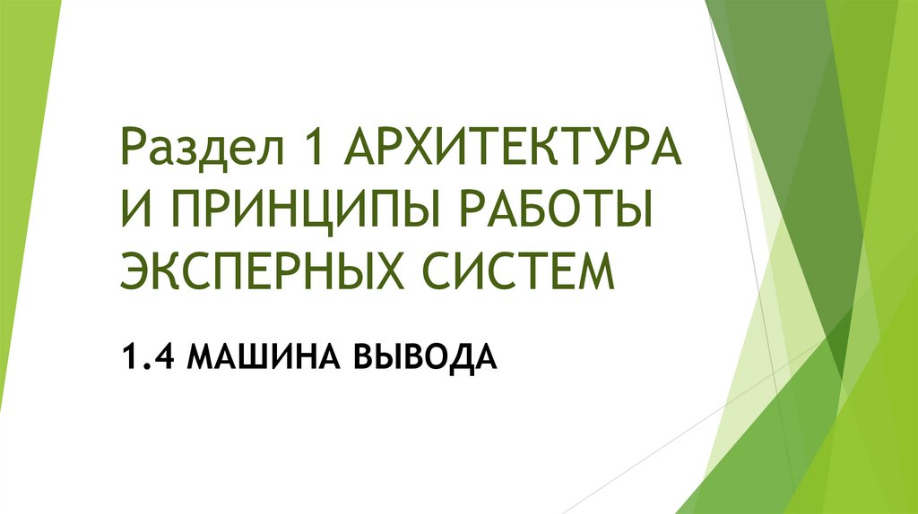 1. Раздел 1 АРХИТЕКТУРА И ПРИНЦИПЫ РАБОТЫ ЭКСПЕРНЫХ СИСТЕМ