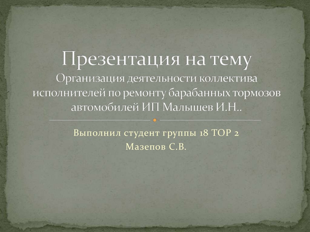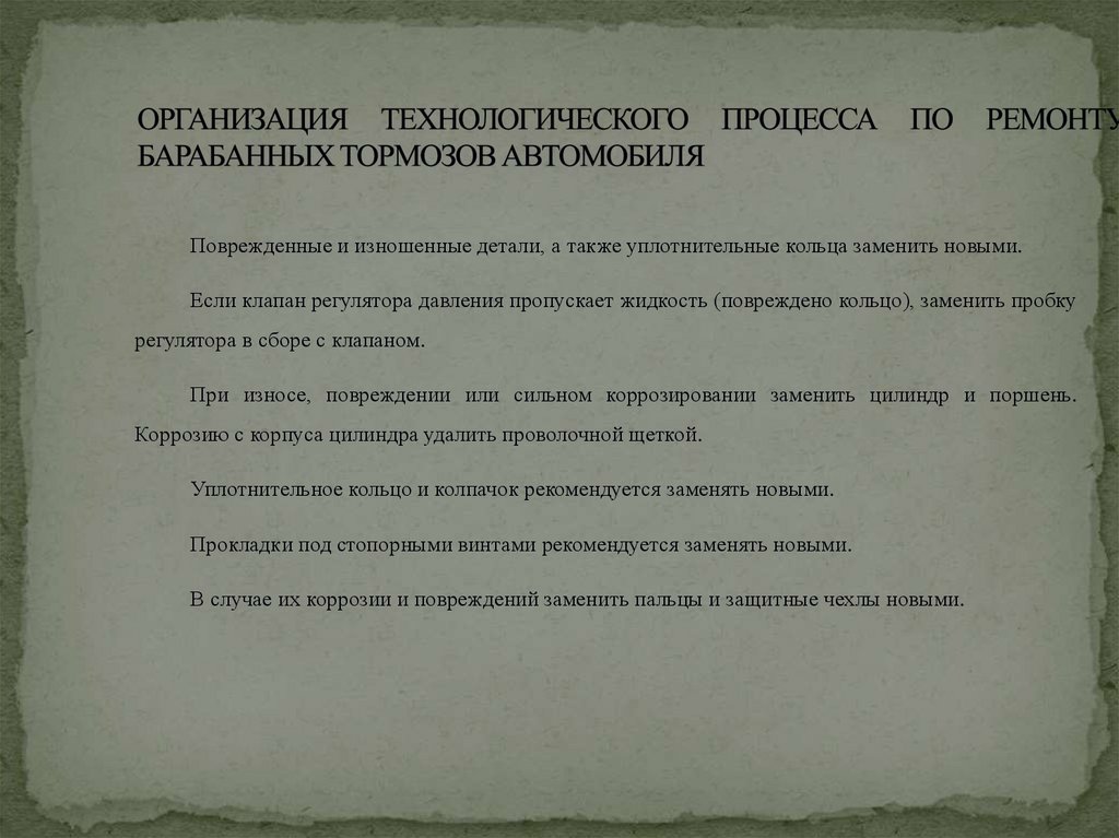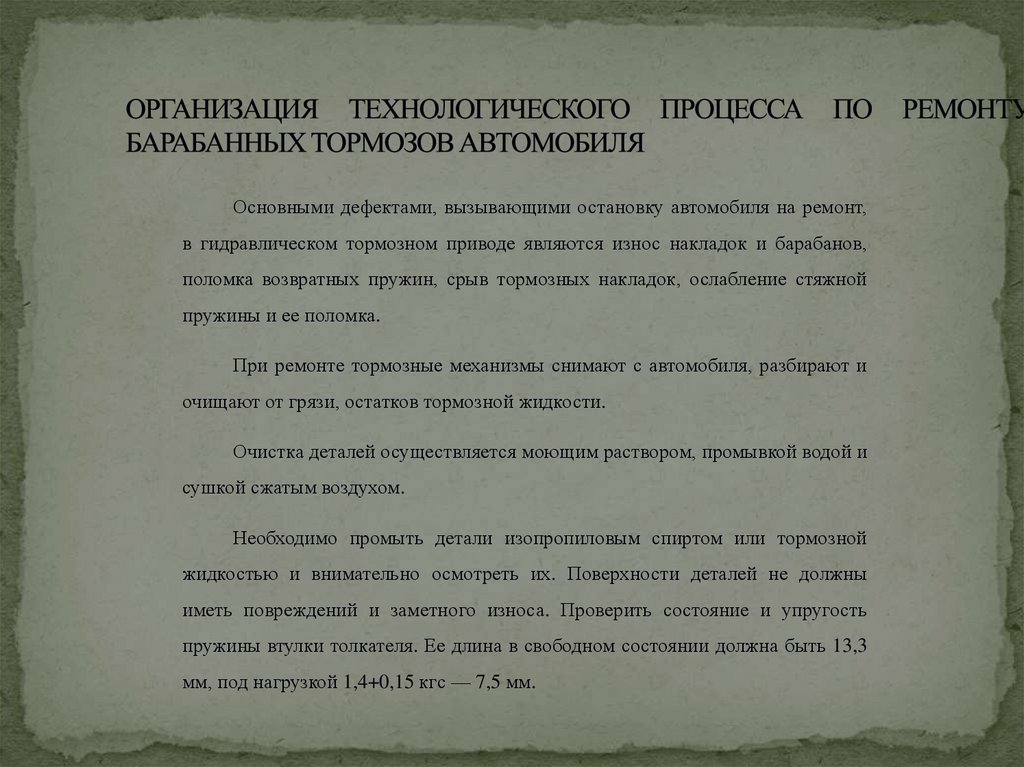 Организация деятельности коллектива исполнителей по ремонту барабанных тормозов