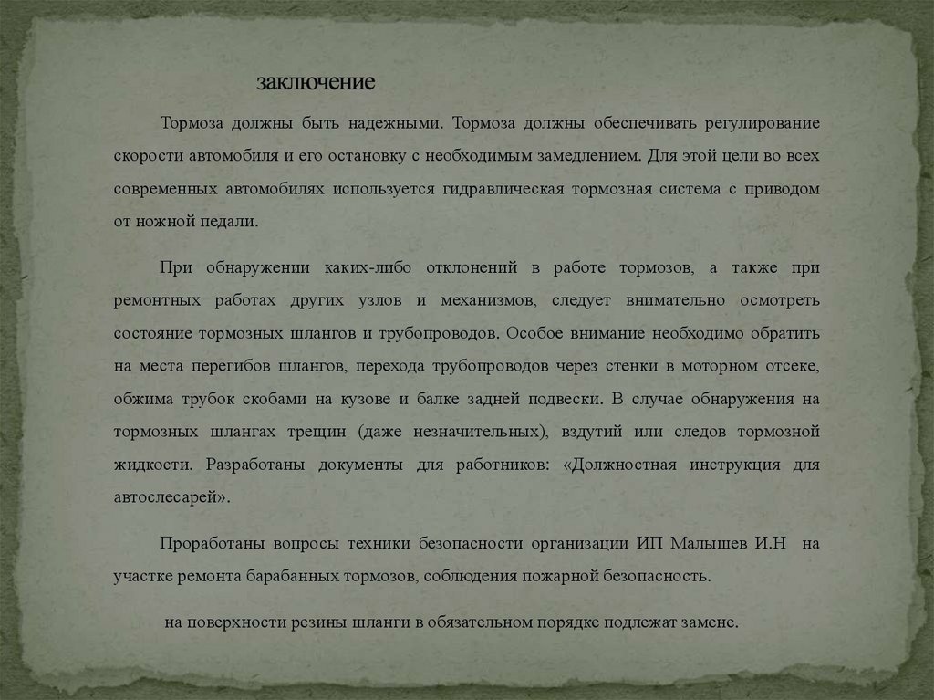 состояние тормозных шлангов и трубопроводов. Особое внимание необходимо обратить