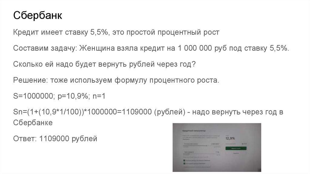 СбербанкКредит имеет ставку 5,5%, это простой процентный рост