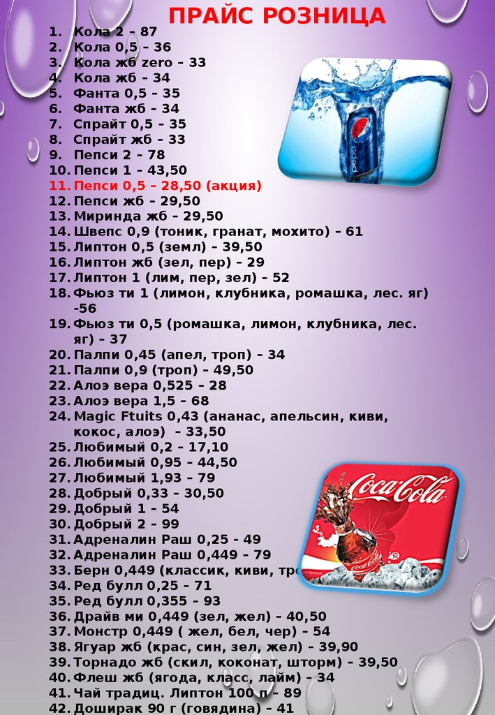 Прайс напитков