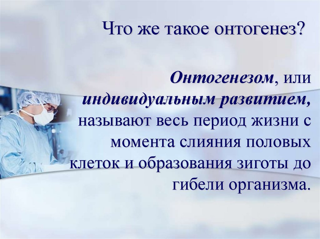 Что же такое онтогенез?Онтогенезом, или