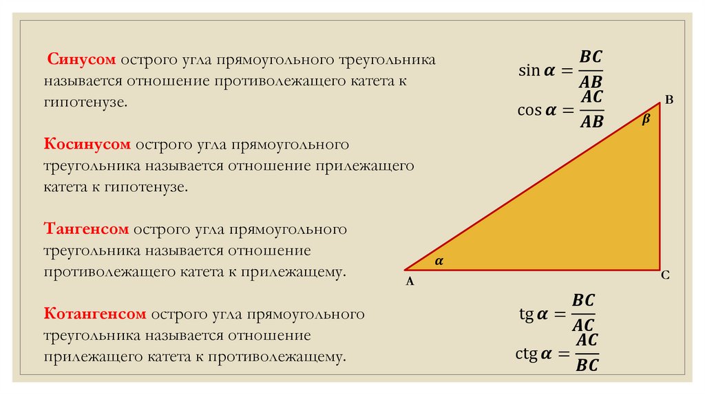 Синус, косинус, тангенс острого угла прямоугольного треугольника