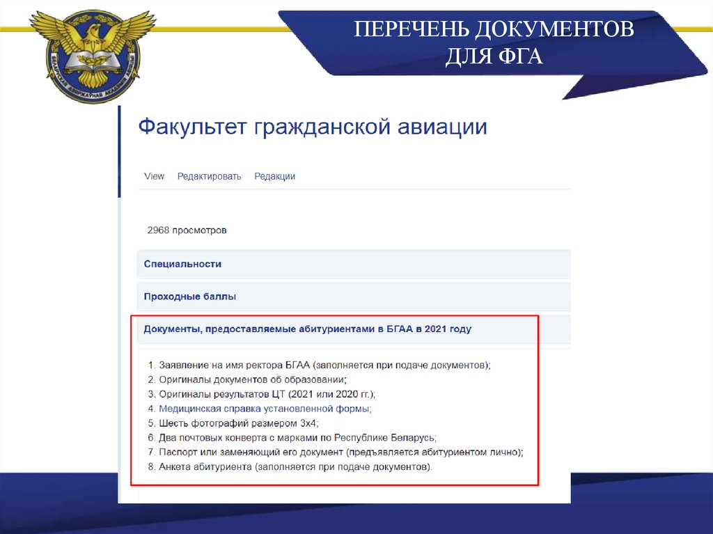 ПЕРЕЧЕНЬ ДОКУМЕНТОВДЛЯ ФГА