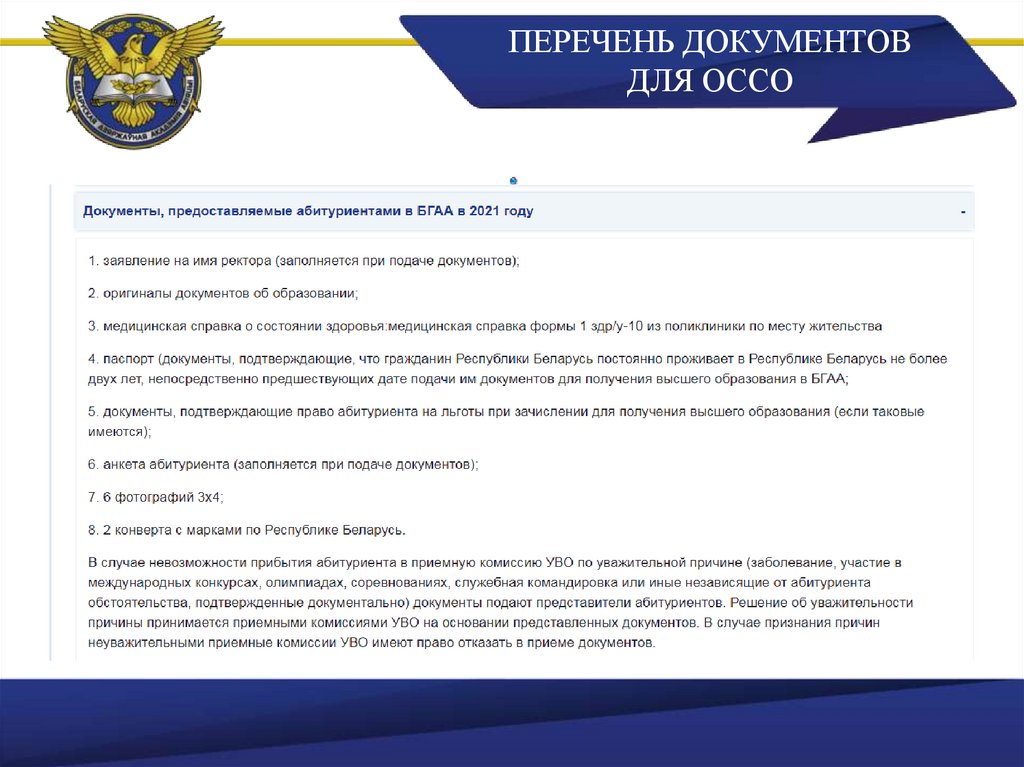 ПЕРЕЧЕНЬ ДОКУМЕНТОВДЛЯ ОССО