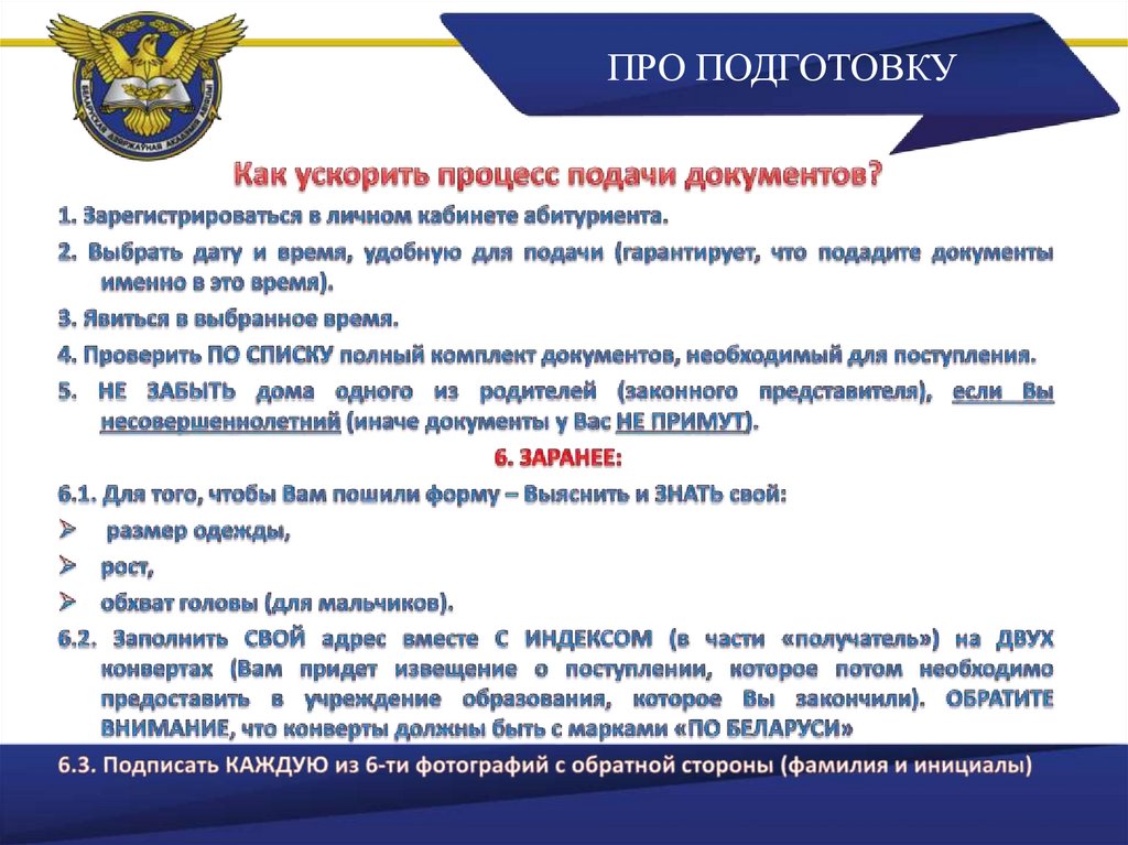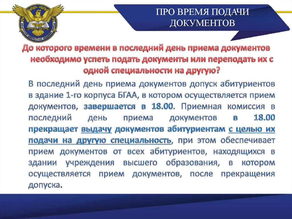 ПРО ВРЕМЯ ПОДАЧИДОКУМЕНТОВ