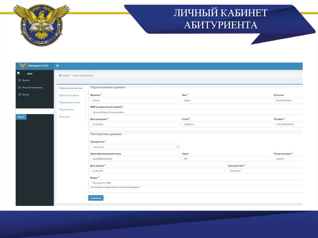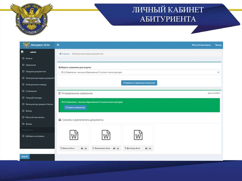 ЛИЧНЫЙ КАБИНЕТАБИТУРИЕНТА