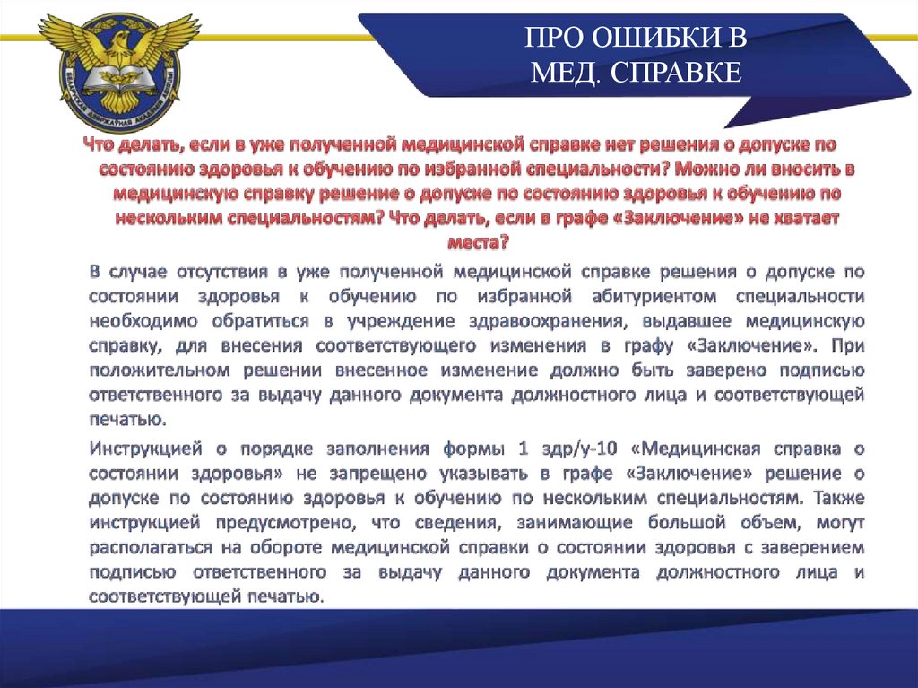 ПРО ОШИБКИ ВМЕД. СПРАВКЕ