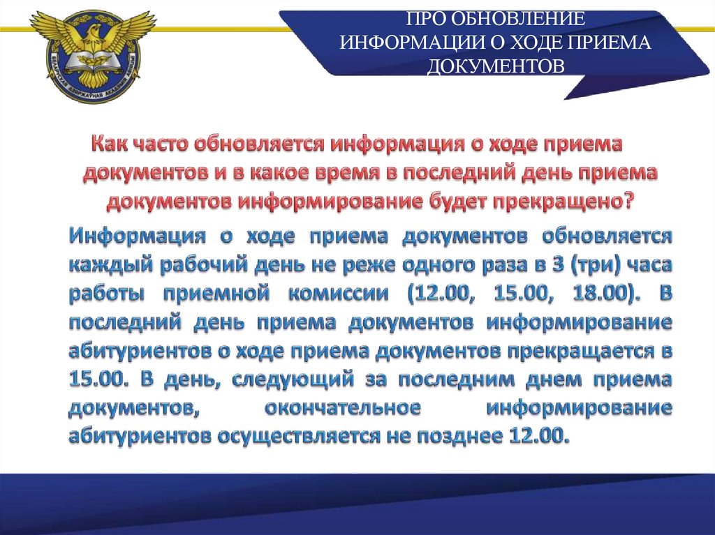 ПРО ОБНОВЛЕНИЕИНФОРМАЦИИ О ХОДЕ ПРИЕМА