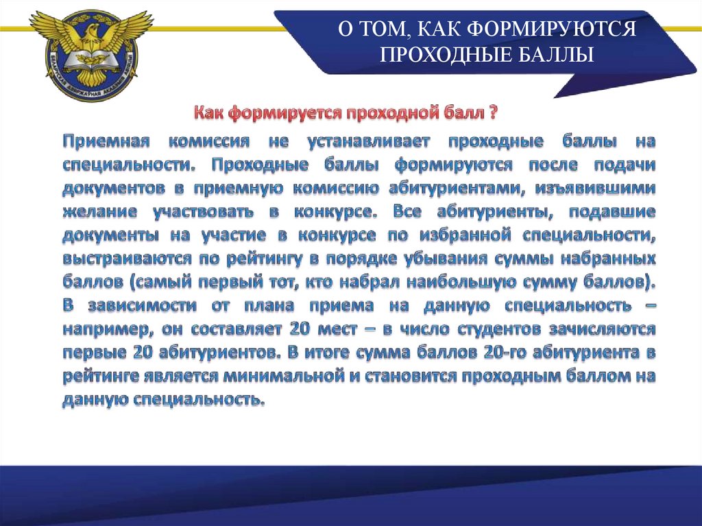 О ТОМ, КАК ФОРМИРУЮТСЯПРОХОДНЫЕ БАЛЛЫ