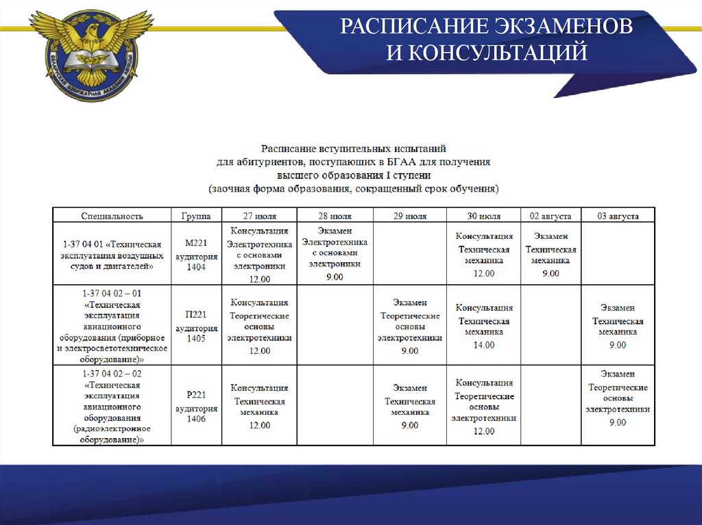 РАСПИСАНИЕ ЭКЗАМЕНОВИ КОНСУЛЬТАЦИЙ