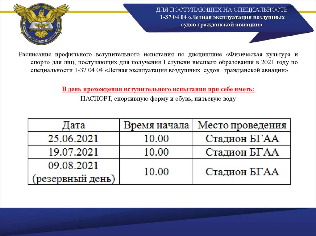 специальности 1-37 04 04 «Летная эксплуатация воздушных судов гражданской авиации»