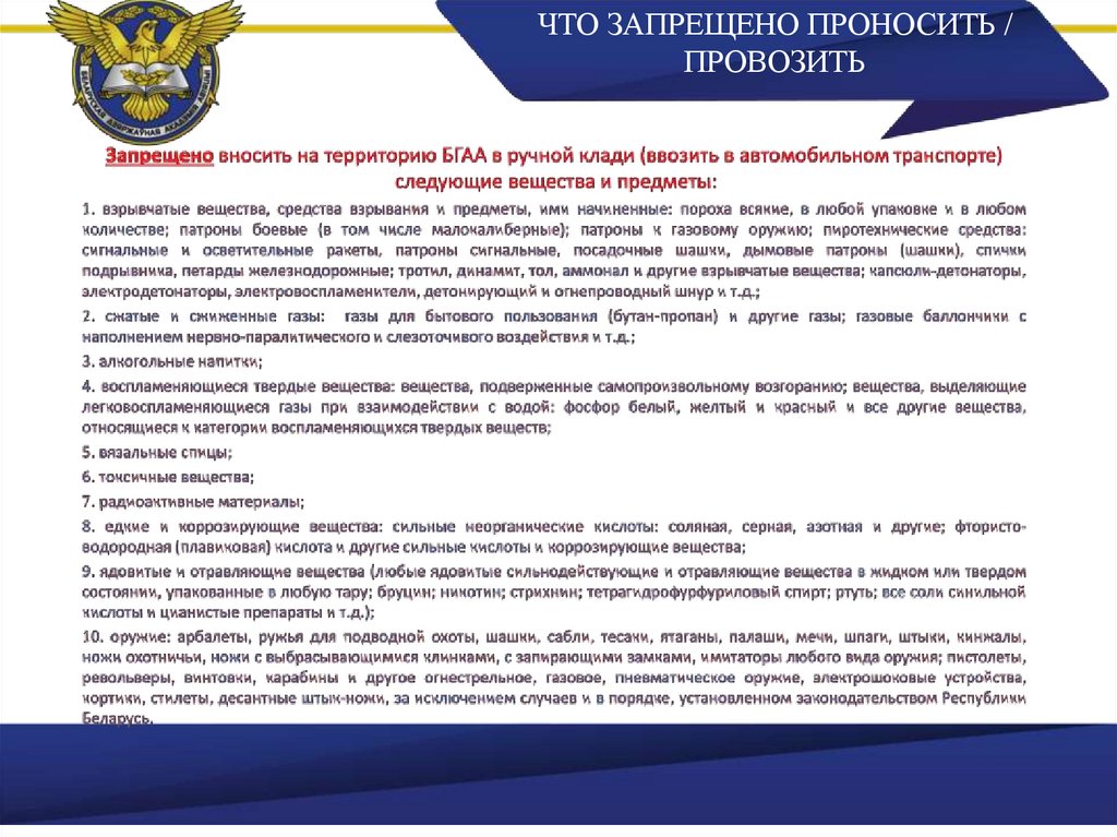 ЧТО ЗАПРЕЩЕНО ПРОНОСИТЬ /ПРОВОЗИТЬ
