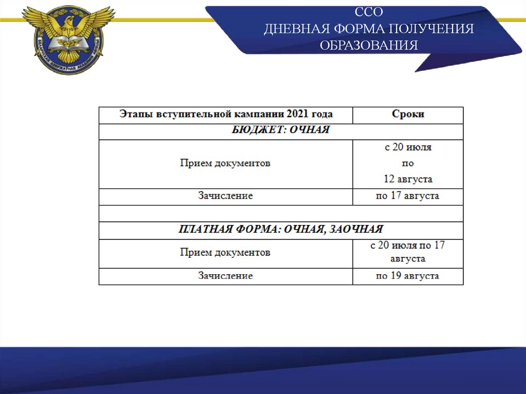 ССОДНЕВНАЯ ФОРМА ПОЛУЧЕНИЯ