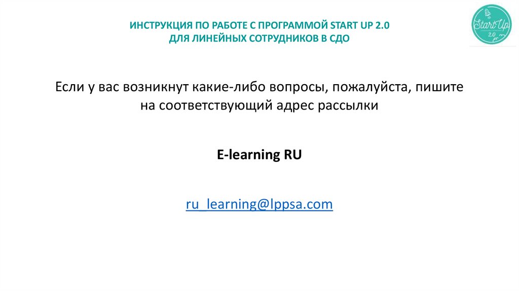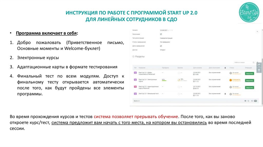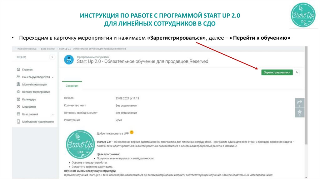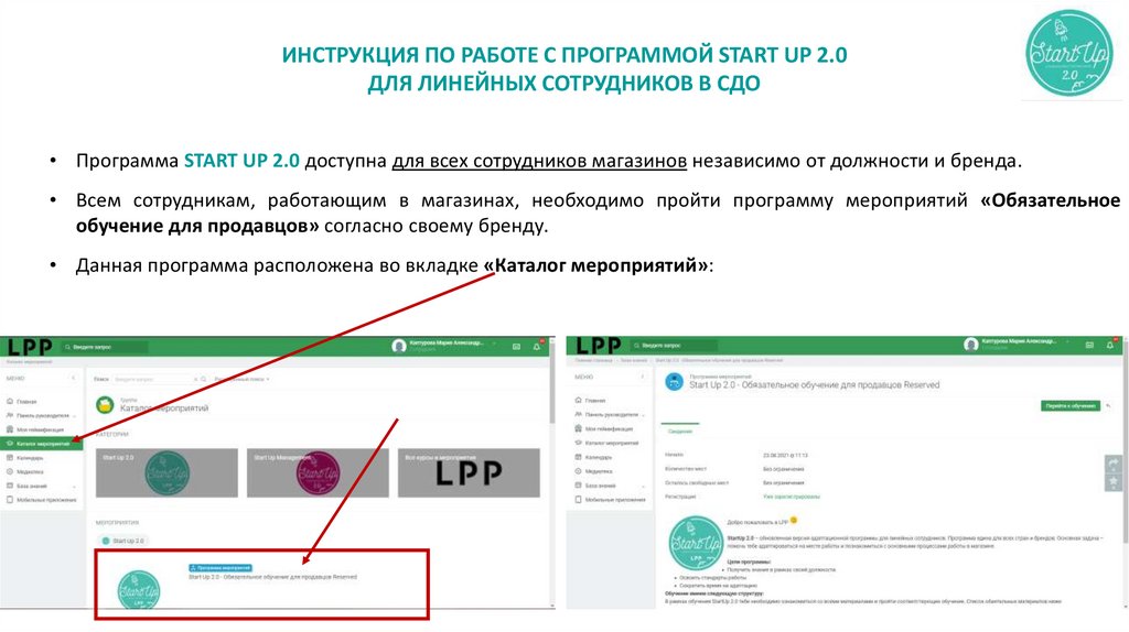 ИНСТРУКЦИЯ ПО РАБОТЕ С ПРОГРАММОЙ START UP 2.0ДЛЯ ЛИНЕЙНЫХ СОТРУДНИКОВ В СДО