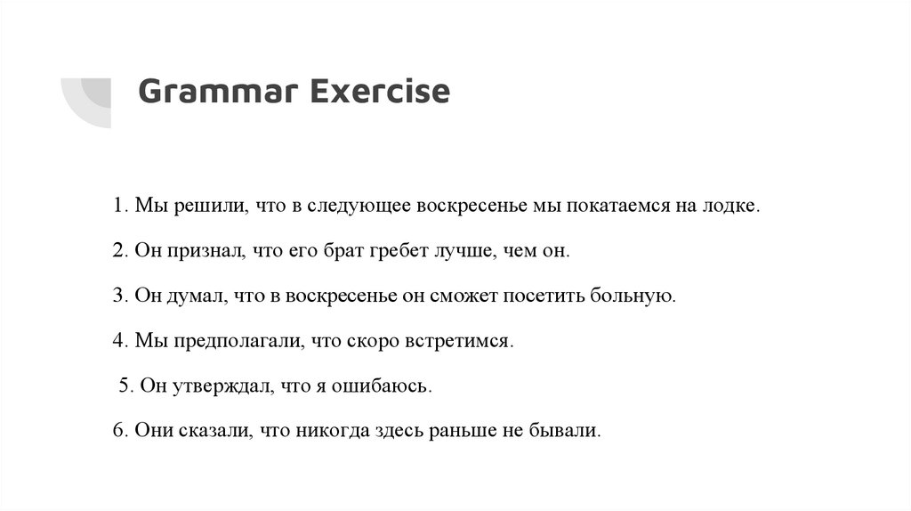 Grammar Exercise1. Мы решили, что в следующее воскресенье мы покатаемся на лодке.