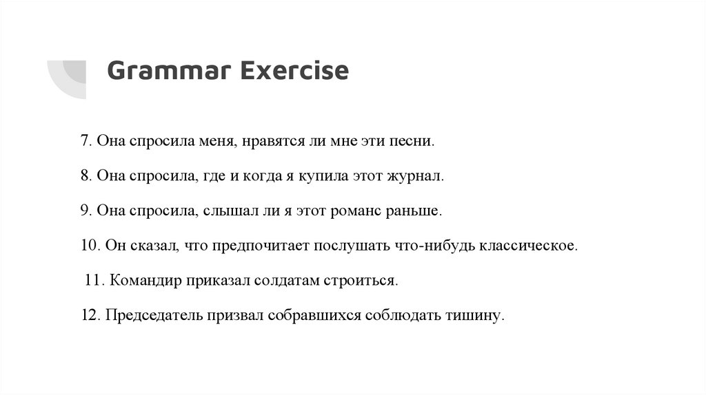 Grammar Exercise7. Она спросила меня, нравятся ли мне эти песни.