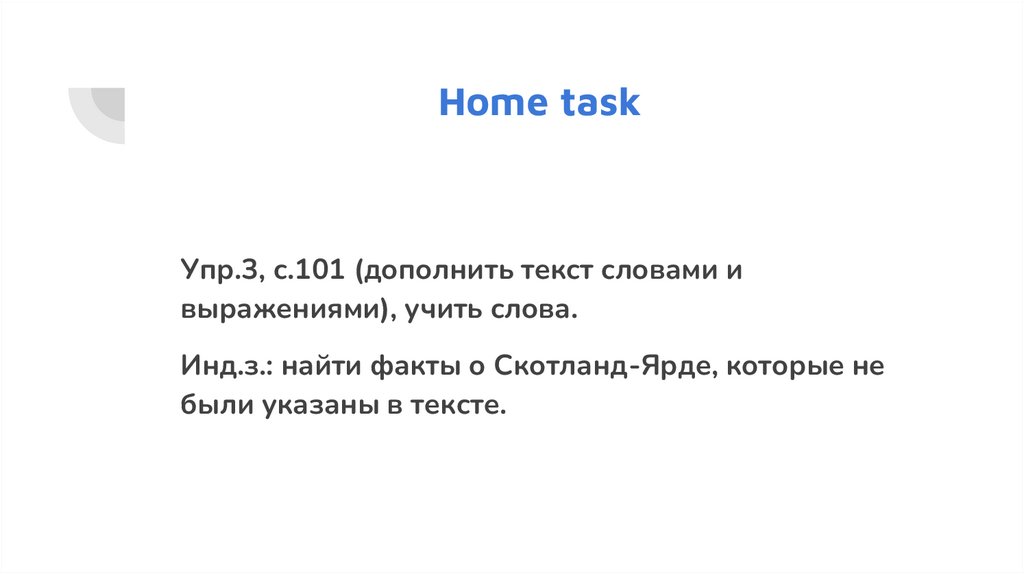 Home taskУпр.3, с.101 (дополнить текст словами и